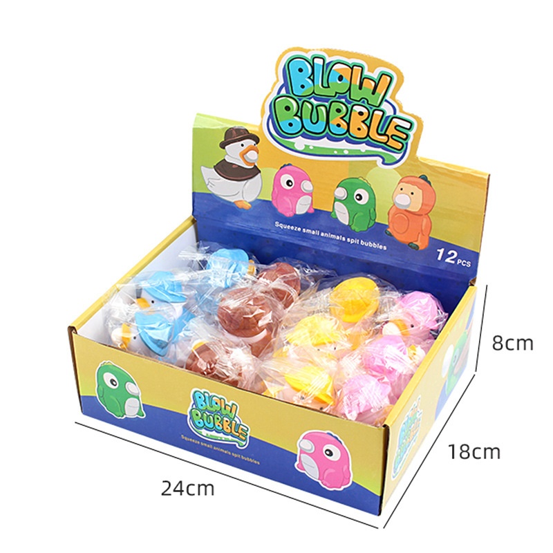 This product is made of safe rubber and TPR materials. When pressed, the dolls will blow a bubble.