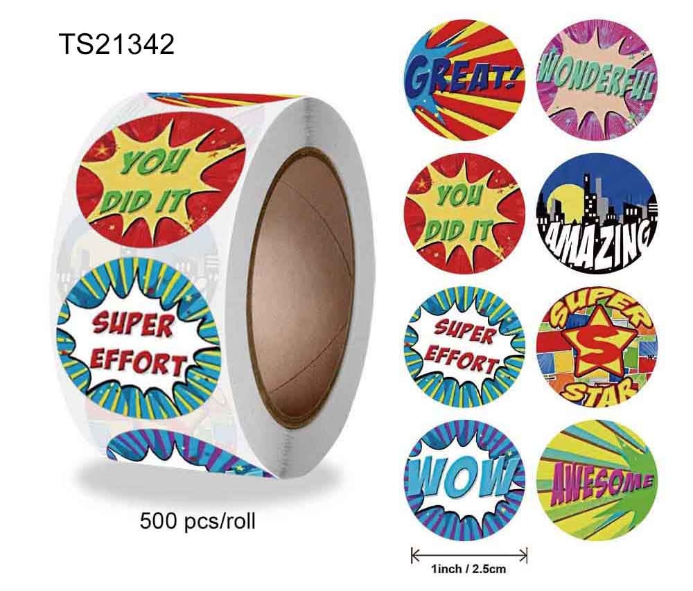 Item No.: TS21339/TS21340/TS21341/TS21342 Qty: 500 pcs/ roll Material: coated paper Size: 2.5cm
